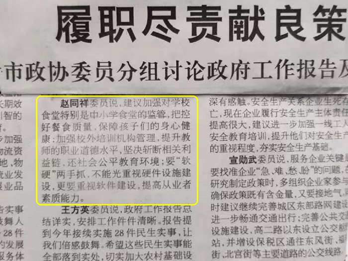 社市委《关于发展数字农业促进传统农业向现代高效农业转型发展的建议》得到市主要领导批示,李峰《关于加强基层医疗卫生机构人才队伍建设的建议》被《潍坊晚报》采访报道,赵同祥围绕加强对学校食堂的监管、加强校外培训机构管理和重视软件建设等方面在联组会的发言被《潍坊日报》《潍坊晚报》报道。