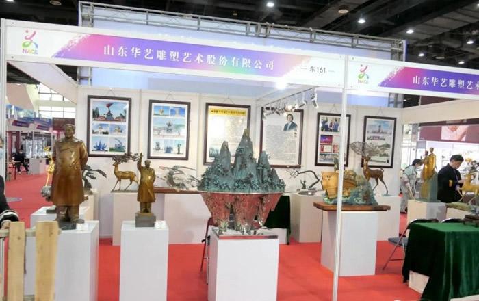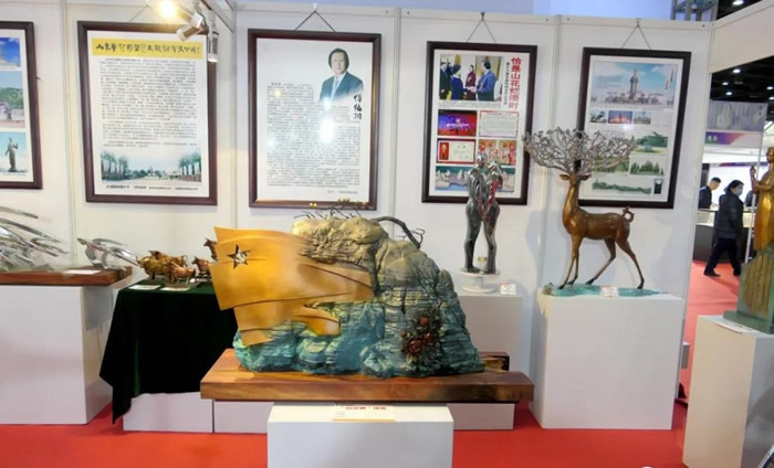 本届全国工艺品博览会暨国际矿物珠宝玉石博览会在大连星海国际会展中心举行,全国各省市自治区的300余家厂商及一批工艺美术大师和全国部分大专院校参加展览。山东华艺雕塑艺术股份有限公司应组委会邀请,精心遴选30余件青铜艺术精品参加展览。(九三学社潍坊市委  王兴全)