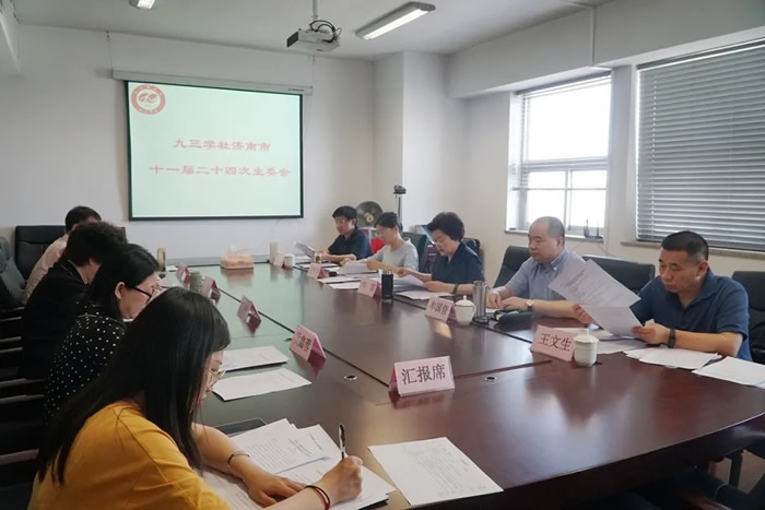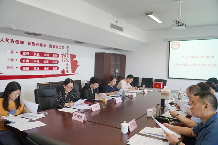 6月4日,九三学社济南市十一届二十四次主委会议召开。九三学社山东省委副主委、九三学社济南市委主委、济南市行政审批服务局局长刘霞主持会议,社市委副主委牟国营、付修琍、王文生、董杰,二级巡视员陈宁宁、秘书长赵宁参加会议,各处室负责人及相关机关干部列席会议。 会议传达学习了习近平总书记在党史学习教育动员大会上的讲话精神,集中学习了《中央统战部关于支持各民主党派开展中共党史学习教育的通知》《九三学社中央关于开展中共党史学习教育的通知》《九三学社中央关于开展庆祝中国共产党成立100周年活动工作方案》等文件精神。各处室负责人汇报了社市委组织发展、参政议政、社会服务等工作开展情况及下半年计划。