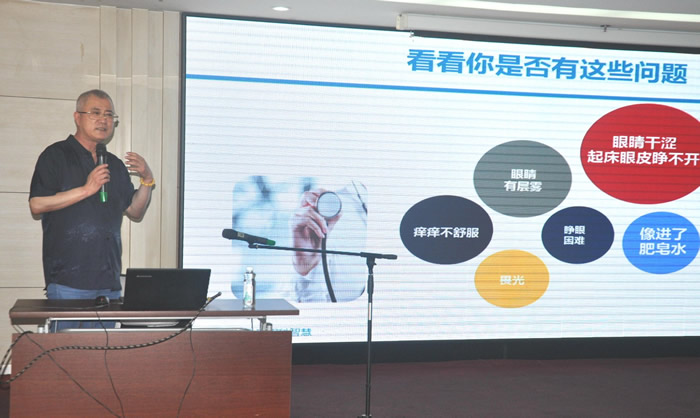 活动上,爱尔眼科胶东半岛总医院院长王首雁应邀做了眼部健康科普讲座。讲座以生动的案例、朴实的语言,深入浅出的讲述了干眼病、糖网病、白内障等眼科常见多发病的发病机理、预防措施、治疗方法,普及了科学的保健理念。讲座中,王首雁院长提倡中老年人一定要形成健康合理的生活方式,日常做到爱眼、护眼,注意合理膳食、适量运动、戒烟限酒。