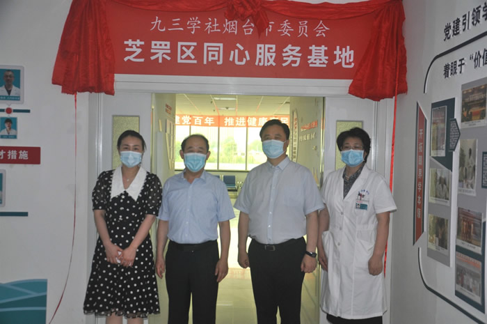 6月29日,以“庆祝建党百年,推进健康惠民”为主题,九三学社烟台市委芝罘区同心服务基地展示馆启动仪式暨座谈会在烟台中西医肛肠医院举行。中共烟台市委统战部副部长、烟台市社会主义学院副院长于忠杰,中共烟台市芝罘区委常委、区委统战部部长徐爱华,及九三学社烟台市委主委邹志强、副主委张桂德、秘书长李玲,烟台中西医肛肠医院院长于洪等领导参加活动。