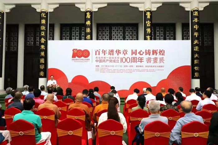 6月29日,由中共青岛市委统战部主办,青岛市各民主党派市委会、市工商联等承办的“百年谱华章·同心铸辉煌”——全市统一战线庆祝中国共产党成立100周年书画展在青岛市美术馆开幕。