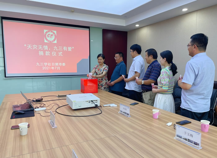 7月24日上午,九三学社日照市第二支社组织为河南受灾群众捐款活动,市委委员、第二支社主委于玉梅主持活动。