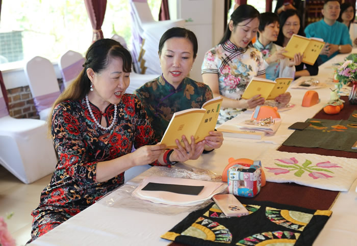 “蒹葭苍苍,白露为霜。所谓伊人,在水一方”,从广为流传的《诗经》里翩然走来,白露节气像一位白衣胜雪的女子,衣袂飘飘、顾盼生姿。9月5日,在这个富有女性魅力的节气来临之际,九三学社德州市委组织20多名社员到奥德曼酒庄开展白露·绣囊——弘扬传统文化活动。市人大常委会副主任、九三学社德州市委主委钟玲参加活动。 活动现场,朗朗诵读传唱经典,旗袍佳人笑逐颜开。社员们先诵读了《诗经》《论语》《大学》等国学经典,品读传统文化,然后身着旗袍拿起针线制作绣囊,尽显贤淑气质。 通过此活动,既品读了传统文化,传递了家国情怀,又增强了社员凝聚力。九三学社德州市委将继续组织此类活动,让“书香九三”氛围更浓、品牌更亮。(九三学社德州市委 关燕)