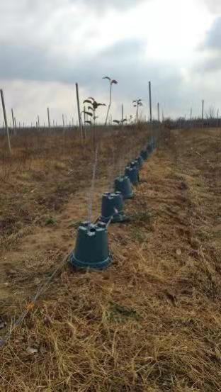 该专利利用物理技术,能够实现果树滴灌情况下减少土壤水分蒸发功能。与传统的覆膜技术相比,该滴灌装置具有提高土壤透气性,固定滴灌管,防止杂草和砧木冒芽生长,夏季能够降低根系周围温度等功能。装置使用常规的pp塑料作为材料,可有效降低制造成本和使用成本。装置还可以作为智慧农业传感器或标签的载体,在未来能够实现更多用途开发。