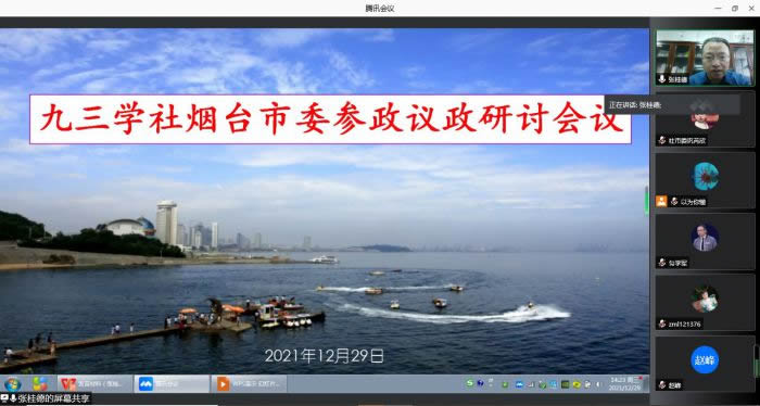 12月29日,九三学社烟台市委召开参政议政工作研讨会。会议由社市委副主委李斌主持。九三学社烟台市委主委秦松,副主委张桂德,部分参政议政骨干社员和机关负责同志参加会议。会议采取腾讯会议线上方式召开。