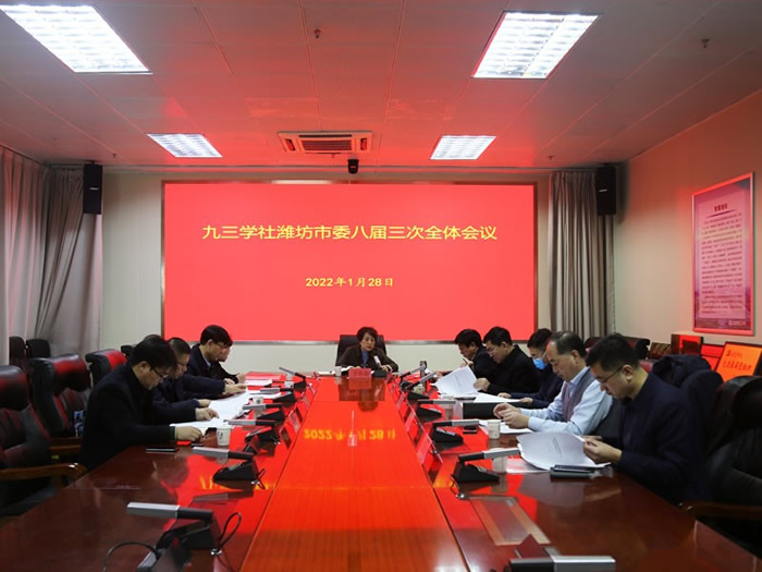 1月28日,九三学社潍坊市委召开八届三次全体会议,学习习近平总书记在省部级主要领导干部专题研讨班的重要讲话精神和省“两会”精神,研究社务工作。社市委主委于冬菊主持会议并讲话,社市委副主委王建良、李莉,秘书长岳建利,社市委委员参加。