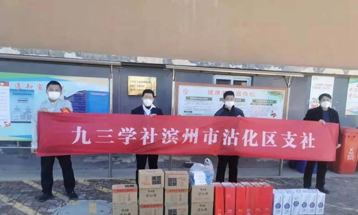 九三学社滨州市沾化区支社及成爱华、李丽、谢永超、李泽芳、杨猛、郭占营、孙昊等九三学社社员通过捐赠火腿肠、方便面、牛奶等生活物资,捐赠医用外科口罩、医用外科手套、消毒液等疫情防控急需的医疗物资,及向各级慈善总会捐款等形式,慷慨解囊,奉献爱心。据不完全统计,各级九三学社组织及九三学社社员累计捐款捐物七十余万元。他们用实际行动,驰援新冠肺炎防控工作。