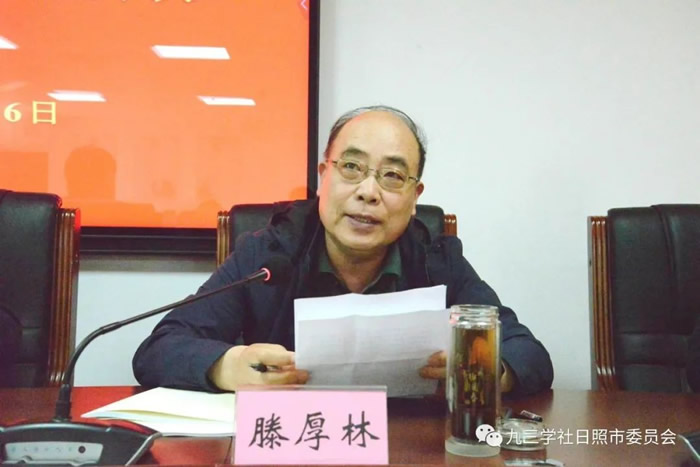 滕厚林代表中共日照市委统战部对九三学社日照市委2021年取得的成绩表示祝贺,希望九三学社市委要把学习宣传贯彻党的十九届六中全会精神作为当前和今后一个时期的重要政治任务;不断深化对参政党地位、性质和历史使命的认识;加强自身建设,扎实开展好“矢志不渝跟党走、携手奋进新时代”政治交接主题教育活动;进一步提高“五种能力”,当好中共日照市委的“好参谋、好帮手、好同事”。