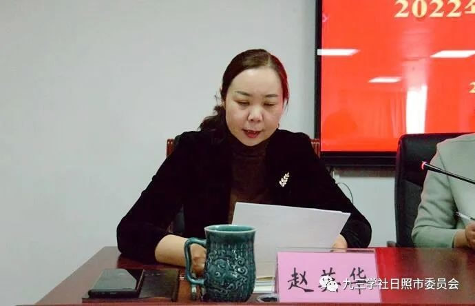 秘书长赵英华宣读《九三学社日照市委关于表彰2021年度参政议政工作先进个人的通报》。