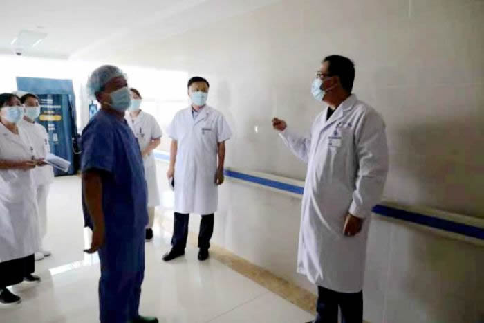刘长春社员作为岚山区人民医院副院长、副主任医师,为前往上海支援的医护人员送行。