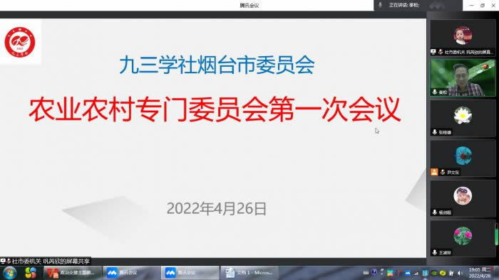 4月26日晚,九三学社烟台市委员会农业农村专门委员会第一次全体会议召开。市政协副主席、社市委主委秦松出席会议,副主委张桂德出席并主持会议。