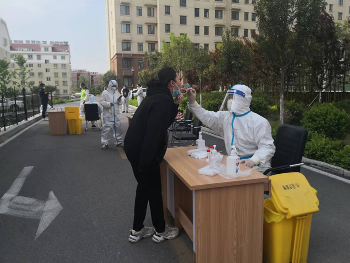 到达梦芝街道办事处驻地已是下午三点半,数十辆各种型号的私家车已经等在路边。没有过多的寒暄,接洽的李主任立刻安排等候的志愿者协助分发由烟台山医院随车配备的物资。每2到3名医护人员组成一个小队,领好物资就被急切等待的各社区工作人员带上车,奔赴各个核酸检测点。不过二十分钟,喧闹的场面就恢复了平静。一百多名队员迅速融入了抗击疫情的洪流之中。 检测工作由最初的稍显忙乱很快就趋于平顺有序,这完全归功于基层社区扎实的工作作风。每天雷打不动的四点钟集合,接送车辆准时等候,检测点及时布置检测设施,居委会人员有序引导居民接受检测。由于疫情防控的需要,每天上午九点钟之前,招远市的所有检测数据都必须上传。面对每个检测点逾千的待检人群,从五点钟开始的检测任务是很繁重的。另外每个社区都有久病卧床的老人,必须逐一登门检测,需要耗费挺长的检测时间。但得益于社区人员完善的提前准备,检测流程合理高效,检测工作开展的十分顺利。 连日来的紧张工作,再加上天气突变,降温加降雨,部分队员出现头疼、咳嗽等感冒症状,部分女队员出现痛经、腰背疼痛等不适情况。在物资采购困难的情况下,街道办李主任尽力协调了部分药品,有效缓解了病症。社员高建东主任发挥疼痛治疗方面的特长,现场施治,效果显著。大家的坚持、坚守,迎来了每日及时完成检测任务的出色战果,为战胜疫情提供了有力支撑。
