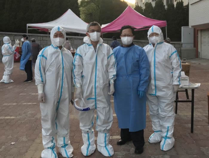 4月26日,社员王晓农、苑洪宪、李文静和李雅婷作为志愿者参加了所在社区全员核酸检测采样工作。