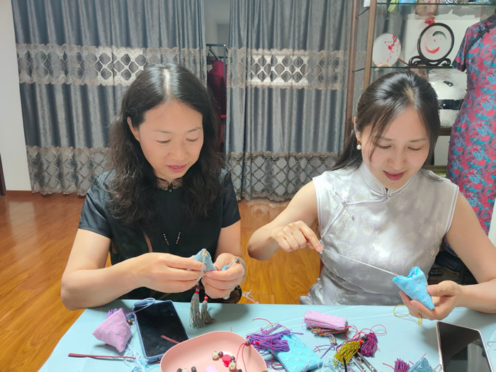 在2022年农历端午节到来之际,九三学社菏泽市委员会开展“香囊传文化,端午寄安康”活动,喜欢手工制作的社员们欢聚一堂,亲手缝制端午香囊。九三学社菏泽市委副主委田荷秀参加活动。