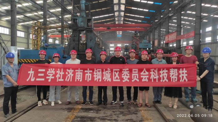 山东泰金斯锻造有限公司,是中国大型叉车货叉及属具专业生产企业,拥有先进的生产工艺、技术装备和检测设备,集产销研于一体。 九三学社钢城区委员会组织钢铁冶炼、材料方面高科技人才与公司生产研发团队结成帮扶对子,围绕生产工艺及公司博士站升级等方面进行了深入交流。