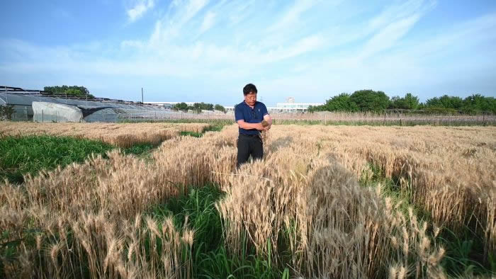 风吹麦浪舞,潮动似黄金。 骄阳下,九三学社社员、享受国务院特殊津贴专家、烟台市农科院二级研究员王江春,站在烟台市农科院小麦选种圃,望着即将收割的“烟农999”,淌着汗水的脸上,满是欣慰的笑意。