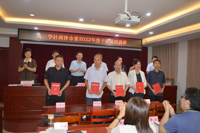 在开班仪式上,宣读了表彰决定,并对2021年度被九三学社中央、九三学社山东省委、九三学社菏泽市委表彰的先进基层组织和优秀社员进行颁奖。