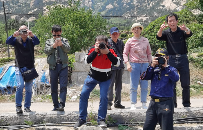 下午,社员们来到崂山青山村采风摄影。五月的青山村,花若云霞、气候怡然。青山、梯田、茶园、村落、渔港、海湾、海洋、海岛相互映衬,高低错落,构成了一幅壮丽的山、海、天画卷,美得恍如隔世,这里也被誉为中国最美的乡村之一。社员们被眼前的美景吸引了,纷纷拿出相机和手机把最美好的景象记录下来,社员们从当地居民那里了解到,崂山区青山社区已有600多年历史,2012年入选第一批“中国传统古村落”。青山渔村三面环海,宁静悠闲,拥有7.2公里的优美海岸线,居民数百年来耕海牧渔,如今以打鱼、种茶、养海鲜居多,百姓收入可观,有的盖起了漂亮的民宿、农家宴,过着幸福安康的日子。