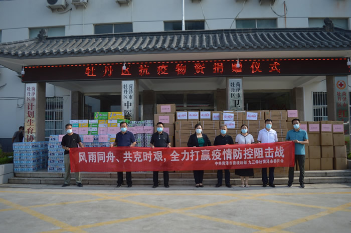 7月26日,广大社员积极响应号召,捐赠特殊社费,仅社员贾国良就捐赠1万余元。特殊社费用于采购一次性使用病毒采样管、病毒采样器、牛奶、方便面、矿泉水等防疫物资。社内企业家、菏泽乡韵鲁锦纺织品有限公司总经理赵丹慷慨解囊,捐献250套防护服、5000个防病毒口罩。7月28日,向牡丹区红十字会捐赠价值近20万元的防疫物资,尤其是16500支一次性使用病毒采样管、330000支病毒采样器,为牡丹区疫情防控工作雪中送炭,解了燃眉之急。