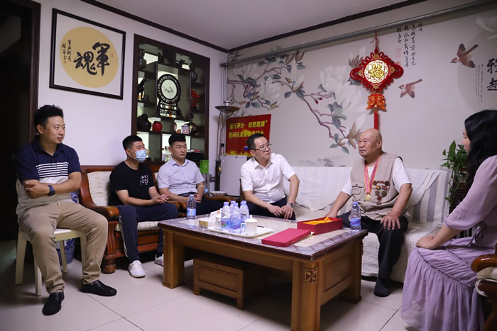 8月5日,九三学社济宁市委组织社员,在社济宁市委委员秦丁带领下,看望九三学社社员、抗美援朝老战士张修颐,为老先生送上慰问和祝福。