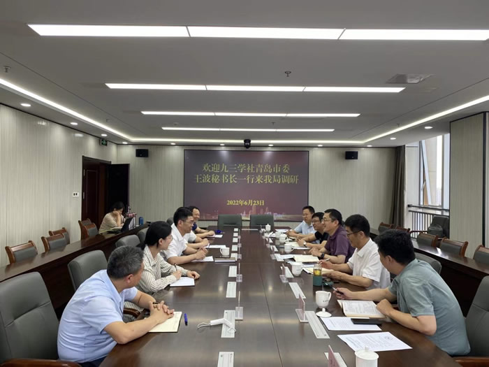 6月23日下午,九三学社青岛市委会秘书长王波带领《关于进位争先创建“全国法治政府示范市”的建议》课题组赴青岛市司法局调研,并与其法制督察处、法制调研处、普法和宣传信息处、秘书处等相关处室负责人就青岛市创建“全国法治政府示范市”相关工作进行座谈。