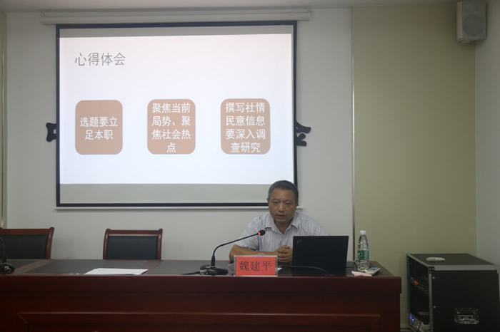 培训中,魏建平教授结合自己的工作经验和信息实例,围绕“选题要立足本职”“聚焦当前局势、聚焦社会热点”“撰写社情民意信息要深入调查研究”三个方面就社情民意信息选题和撰写要点进行了专题辅导。参训社员表示,通过培训强化了参政履职的使命意识,提升了调查研究的能力,下步将紧紧围绕党委政府中心工作,立足自身岗位和群众关切,深入调研,提升参政议政工作质量,助力品质城市建设。(九三学社潍坊市委    孙三鹏)
