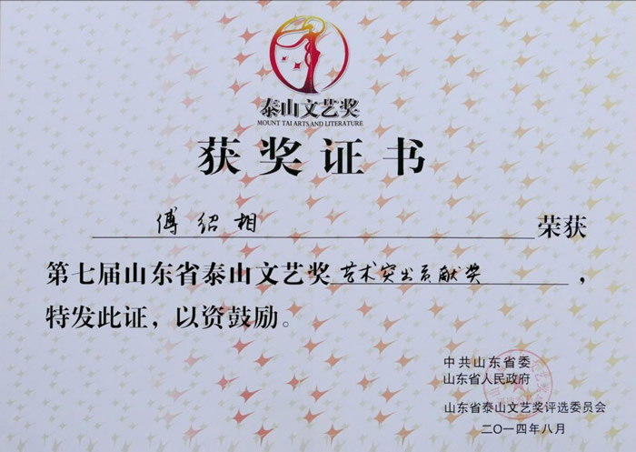 8月5日,第八届中国工艺美术大师评选结果公布,九三学社社员傅绍相获此殊荣。中国工艺美术大师是国内工艺美术领域最高荣誉,按照国务院《传统工艺美术保护条例》有关规定,自1979年开展首届中国工艺美术大师评选以来,历经8次评选,我国累计产生了640名中国工艺美术大师,其中山东23名;本届全国共有108人入选,其中山东3人。