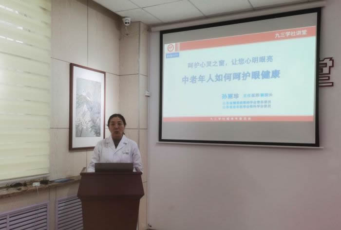 此次公益讲堂,由威海爱尔眼科医院副院长,主任医师孙丽珍主讲,题目为《中老年人如何呵护眼健康》。通过“线上+线下”的形式,100余名九三学社社员和广大听众朋友聆听了讲座。