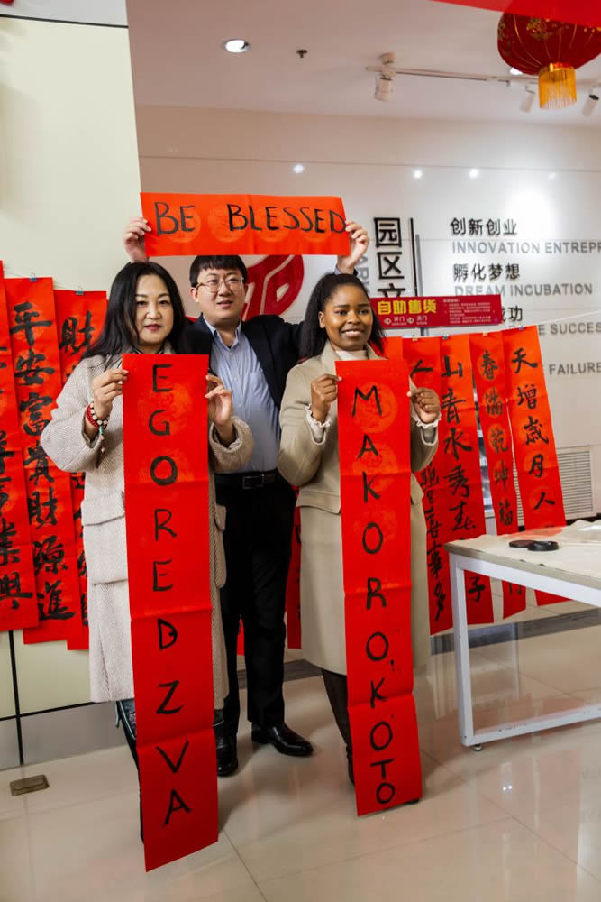 本次活动得到了园区外国企业家的积极响应和参与,特别是俄罗斯、津巴布韦等外国企业家,他们被中国文化所吸引,为中华文化的博大精深所叹服,还尝试着用本国语言来书写春联。来自俄罗斯的企业家丹尼斯说:“我写的这副春联意味着,希望中国平安成功、中俄友谊天长地久”。小小春联体现和展示了两国深厚情谊,在文化的交融中,呈现出一派“中西合璧”的美好景象。