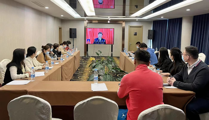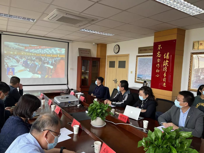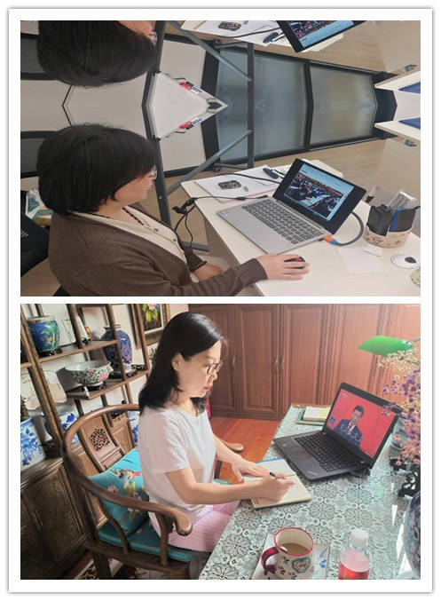 社青岛市委会班子在民主党派机关五楼会议室集体收看;