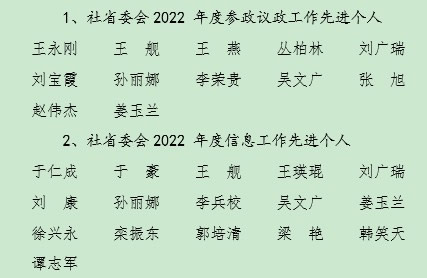 2022年,青岛市各基层组织、专委会认真履行参政议政职能,围绕中心,服务大局,积极撰写社情民意信息,深入开展调研,努力建言献策,协助政府部门科学决策发挥了积极作用。近日,九三学社山东省委员会通报表彰2022年度参政议政工作、信息工作先进集体和先进个人。社青岛市委会荣获社省委2022年度参政议政工作和信息工作先进集体,多名社员被评为先进个人。 一、先进集体 1、社青岛市委会荣获社省委2022 年度参政议政工作先进集体一等奖第一名 2、社青岛市委会荣获社省委2022 年度信息工作先进集体一等奖第一名 二、先进个人