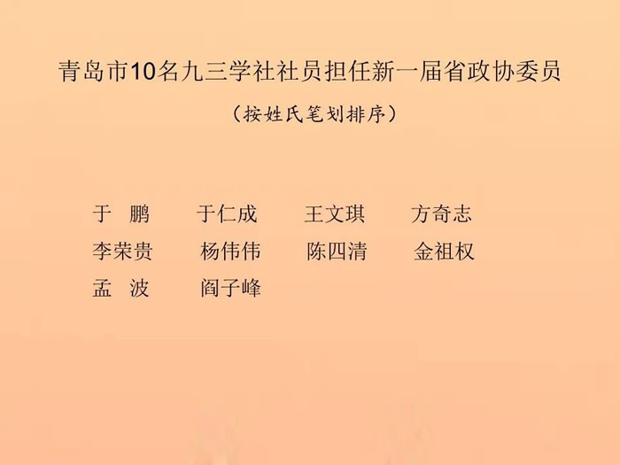 » 青岛市10名九三学社社员担任新一届省政协委员