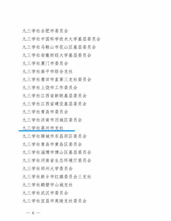 九三学社莱州市支社获九三学社中央宣传思想先进单位荣誉称号