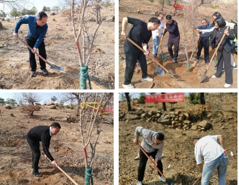 在植树节来临之际,九三学社泰安市委会机关和景区樱桃园管理区联合开展“活力九三 植绿泰山”活动,为美丽泰山再添新绿。九三学社泰安市委会秘书长郭启明、泰山景区组织部副部长陈玉参加了此次活动。