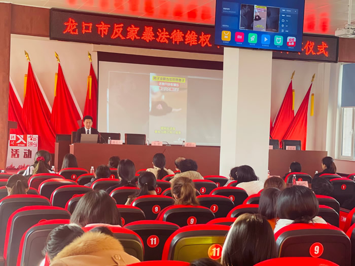 随后,九三学社烟台市委法治专委会副主任、龙口市反家暴法律维权中心负责人韩礼御作了《反对家庭暴力,构建平安和谐家庭》讲座。