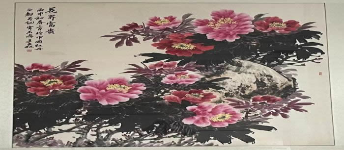 最美人间四月天,又是一年花开时。谷雨时节的菏泽(古称曹州),牡丹花竞相开放,五彩缤纷。“唯有牡丹真国色,花开时节动京城”(唐 刘禹锡),牡丹是“百花之王”、中国国花,“竞夸天下无双艳,独立人间第一香(唐 皮日休)”是对牡丹花最好的赞赏。菏泽是中国牡丹之都,有“曹州牡丹甲天下”的美誉。 菏泽牡丹的栽培历史悠久,发展至今有九大色系、十大花型,1259个品种,种植近50万亩。曹州牡丹园是世界品种最多、面积最大的牡丹园。花开时节,曹州牡丹园内,人头攒动,花海如潮,人们被一株株、一朵朵鲜花吸引,令人流连忘返。红牡丹“火炼金丹”,火红发紫,灼灼发光;黑牡丹“冠世黑玉”,深紫发黑,姿貌绝伦;蓝牡丹“蓝田玉”,粉里透蓝,素洁淡雅;绿牡丹“豆绿”,色奇品佳,别具风韵。牡丹花朵大奇艳,雍容华贵。粉的妖娆妩媚,色香兼备,紫的品居中流,华而不俗,白的洁白无瑕,清爽袭人,红、黄、绿、白、黑、兰、粉、紫、复九色牡丹竞相开放,连阡接陌,艳若蒸霞,各显风姿,美如仙境,蔚为壮观,堪称华夏之最。 (菏泽市著名画家 杨文斌 牡丹画 花开富贵)
