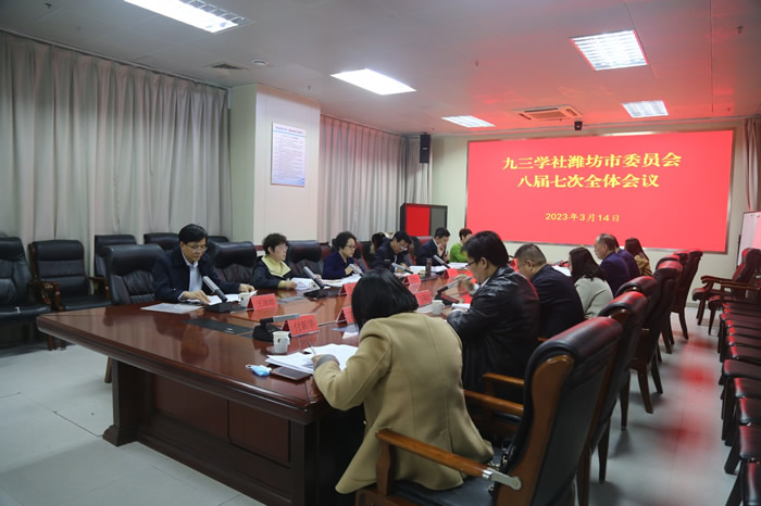 3月14日,九三学社潍坊市委员会八届七次全体会议召开。社市委会主委于冬菊主持会议,社市委会副主委王建良、李莉,秘书长岳建利,社市委会委员参加,社市委会监督委员会部分委员列席。