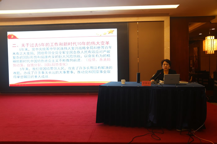 于冬菊结合个人学习体会,从深刻学习把握中共二十大的重大主题、主要成果和重要意义,坚持党的全面领导和全面从严治党,加快建设新时代社会主义现代化强市等方面,结合九三学社潍坊市年度工作实际对中共二十大精神作了系统宣讲和深入阐释。宣讲报告主题鲜明、重点突出,既有政治高度、理论深度,又有针对性和实践性,对全面理解、准确把握中共二十大精神,推动中央决策部署和省、市委工作要求落地落实具有很强的指导意义。