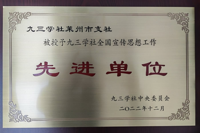 莱州市支社获九三学社中央全国宣传思想工作先进单位。