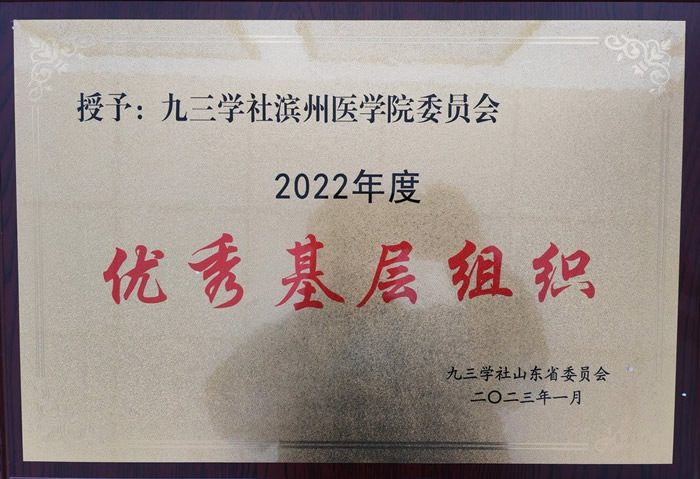 九三学社滨州医学院基层委员会获九三学社山东省2022年度优秀基层组织。