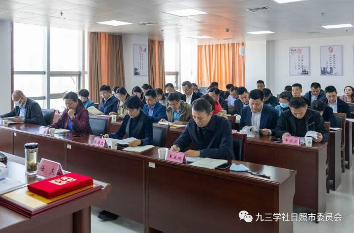 4月2日,九三学社日照市委会五届七次全委(扩大)会议召开。九三学社日照市委会主委、日照市人民医院院长崔维刚,日照市委统战部副部长魏华丽出席并讲话,副主委吕慧验主持会议,秘书长赵英华,日照市委统战部党派知识分子科科长任杰,委员陈海文、于玉梅、王玉鹏、张雷参加会议。