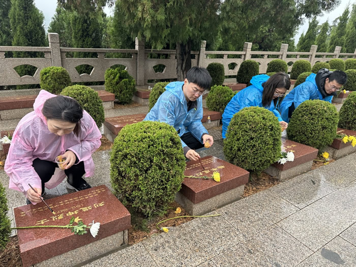 清明时节雨纷纷,无限哀思祭英魂。为缅怀烈士的不朽功勋,弘扬爱国主义精神,4月4日,由九三学社泰安市委会主办,九三学社市委会青年工作委员会、九三学社肥城支社承办,在肥城市陆房战斗烈士陵园开展“执笔描金祭先烈 红色精神代代传”活动。 陆房战斗烈士陵园,主要纪念在陆房战斗中英勇牺牲的革命先烈。陵园傍山而建,绿植如茵,这里沉睡着2400多名革命先烈,其中包含178位无名英雄,时任八路军一一五师代师长陈光和其夫人史瑞楚也安葬于此。 此次活动参与人员共计30余人,社员们首先前往无名烈士广场,依次站队,向无名烈士三鞠躬,并向烈士敬献鲜花,告慰英灵,寄托哀思。