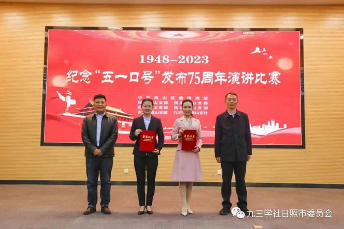 4月28日,九三学社日照市委会选派2名社员参加日照市岚山区组织开展的纪念中共中央发布“五一口号”75周年演讲比赛。两名选手在20名选手中脱颖而出,喜获佳绩。