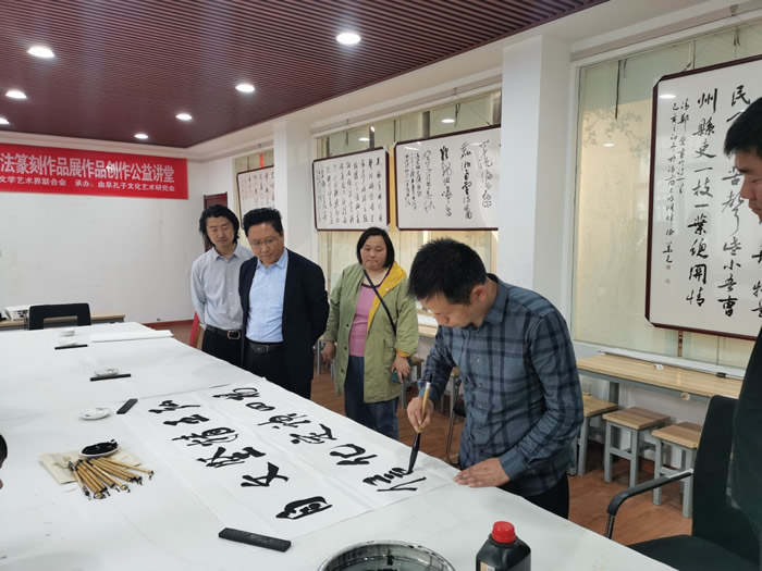 在孔子雕像艺术研究院,山东省工艺美术大师杜庆收详细介绍了创作《孔子圣迹图》的初衷和艰辛过程,106件尼山石雕作品,用独有的方式述说着孔子一生的故事。这不仅是雕刻技艺的展示,更是他与先师孔子通过尼山石进行的一次跨越时空的对话。社员们在他的讲解示范下,亲自体验了尼山砚选石、定型、构图、刻石等环节,深度感受了传统文化的相融相通、博大精深。在云之书法工作室,中国书协会员石云之示范展示了书法作品书写创作过程,社员们参观了“纪念习近平总书记视察曲阜十周年暨弘扬优秀传统文化”书画展,在书画家的引导讲解中,驻足凝视,细细品味。大家一致表示,此次文化体验活动很有意义,要深入学习习近平总书记视察曲阜重要讲话精神,不断坚定文化自信,在今后的工作中始终牢记初心,肩负历史使命,为弘扬爱国、民主与科学精神而不懈努力。(社曲阜市委会 颜珩 张新忠)