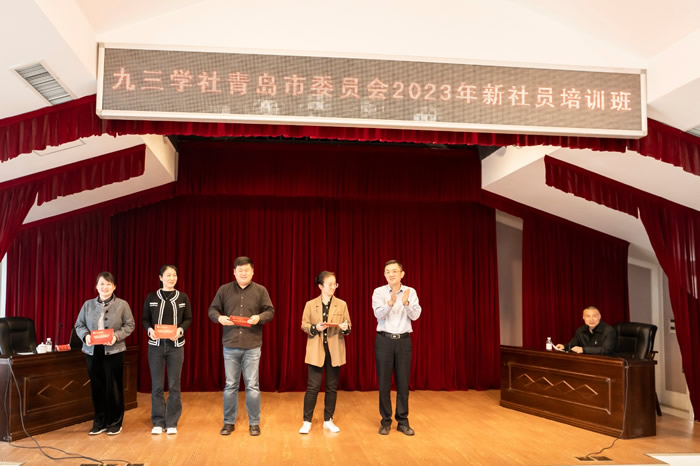 于仁成副主委在开班式上向新社员们提出四点要求:一是做政治上的明白人,自觉加强理论学习,增强政治的理解和把握能力,提高自身的政党意识;二是做勤履职的有心人,充分发挥专业优势,努力提高参政议政能力和水平;三是做社组织的热心人,继承和弘扬九三学社的光荣传统,发挥专业特长和优势,热心参与社务工作;四是做建功业的模范人,立足岗位,追求卓越,努力成为专业领域的专家,更要服务大局,履职尽责,努力成为参政议政的行家。 王霞副主委对新加入的社员表示热烈祝贺和欢迎,并提出殷切希望,勉励新社员着眼当前,展望未来,既能在本职工作中建功立业,实现个人价值,又能坚守九三人的初心使命,积极建言献策,勇于为时代发声。 社省委会思想建设研究中心副主任、社市委会思想建设与理论研究中心副主任、青岛大学民营经济研究院院长王风华为新社员做了《重温九三学社社史:为了民主与科学的梦想》的主题讲座。她从“我是谁、从哪里来、到哪里去”三个人类属性问题出发,介绍了九三学社的建立和发展的历史,并动情地讲述了九三学社的核心价值观与优良传统。通过许德珩、王淦昌、邓稼先、程开甲等多位九三先贤“君视名利如粪土、许身国威壮河山”的感人故事,为新社员讲述了九三学社根植心中的大爱情怀。 社市委会副秘书长刘宝霞做了《参政议政和信息工作务实》知识讲座,围绕为何要反映社情民意信息、如何撰写社情民意信息等内容,结合近年来社情民意的实际案例,深入浅出地详细讲解了一篇高质量社情民意信息的写作过程、细节及注意事项。她鼓励社员要利用好各自专业优势,关注社会热点、重点问题,从专业领域寻找切入点,多写、写好高质量社情民意信息,展现九三学社社员的责任担当。 在上午的培训结束后,社市委会领导向新社员颁发了《入社通知书》。