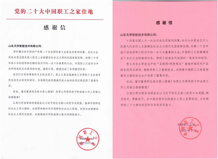 董涛毕业于山东大学,他所创办的山东天用智能技术有限公司是一家集计算机软硬件研发、生产、销售一体化的高新技术企业,捐赠的设备是由天用智能联合山东大学共同研发,是济南首款具备视觉分析功能的一体化厨房安全生产保障智能终端,主打“物联网+互联网+人工智能”综合保障理念,搭载烟感探测报警系统、可燃气体探测系统、电气火灾监测系统与视频监控系统,具备火焰伴随检测、可燃气体检测、厨师着装检测、温湿度采集以及驱鼠等功能,可为70余平方米的灶间提供监测保障。该设备在保障党的二十大和全国两会的厨房安全生产发挥了积极作用。