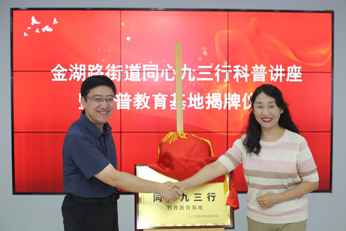 8月23日上午,由九三学社青岛市市南区委员会承办的“同心九三行科普教育基地”揭牌仪式暨“同心九三行科普教育讲堂”讲座在市南区金湖路街道创意100(南京路100号)举行。