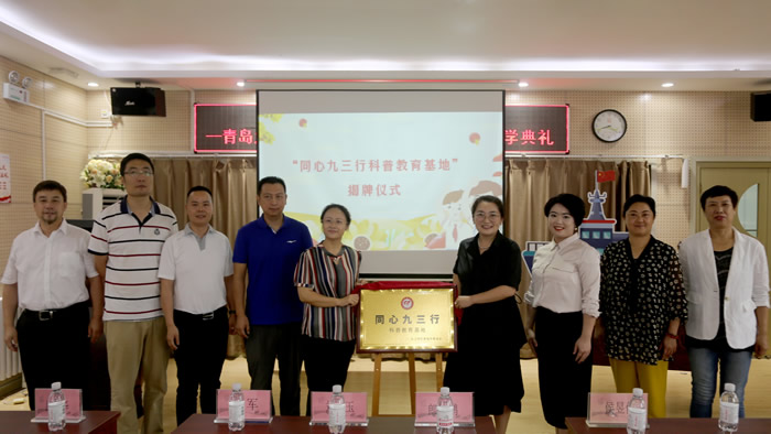 刘春玉、郎云鹏、戴军、王圣、吕胜华与市北区少年宫主任王琛、台东街道办事处宋琳科长、大名路社区管丽艳主任、青岛大名路小学校长侯昱倩共同为“同心九三行科普教育基地”揭牌。 侯昱倩在致辞中表示,学校将借力九三学社青岛市委员会及基地资源优势,进一步提升学生们的科学素养,把学生培养成爱科学、懂科学、用科学的好少年。