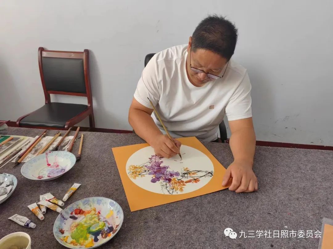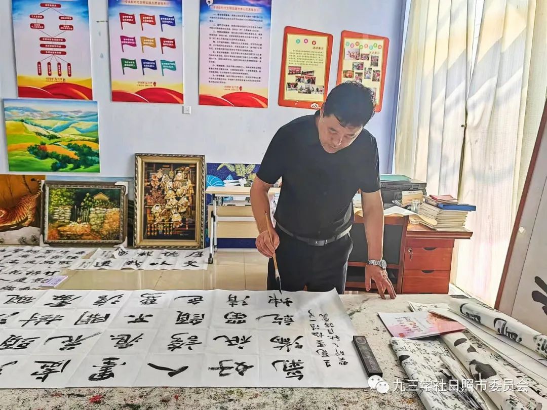 九三学社日照市委会主委、日照市人民医院院长崔维刚,九三学社日照市委会委员、岚山支社主委王玉鹏出席活动,九三学社日照市第一支社部分社员,九三学社日照书画院书画家参加活动。